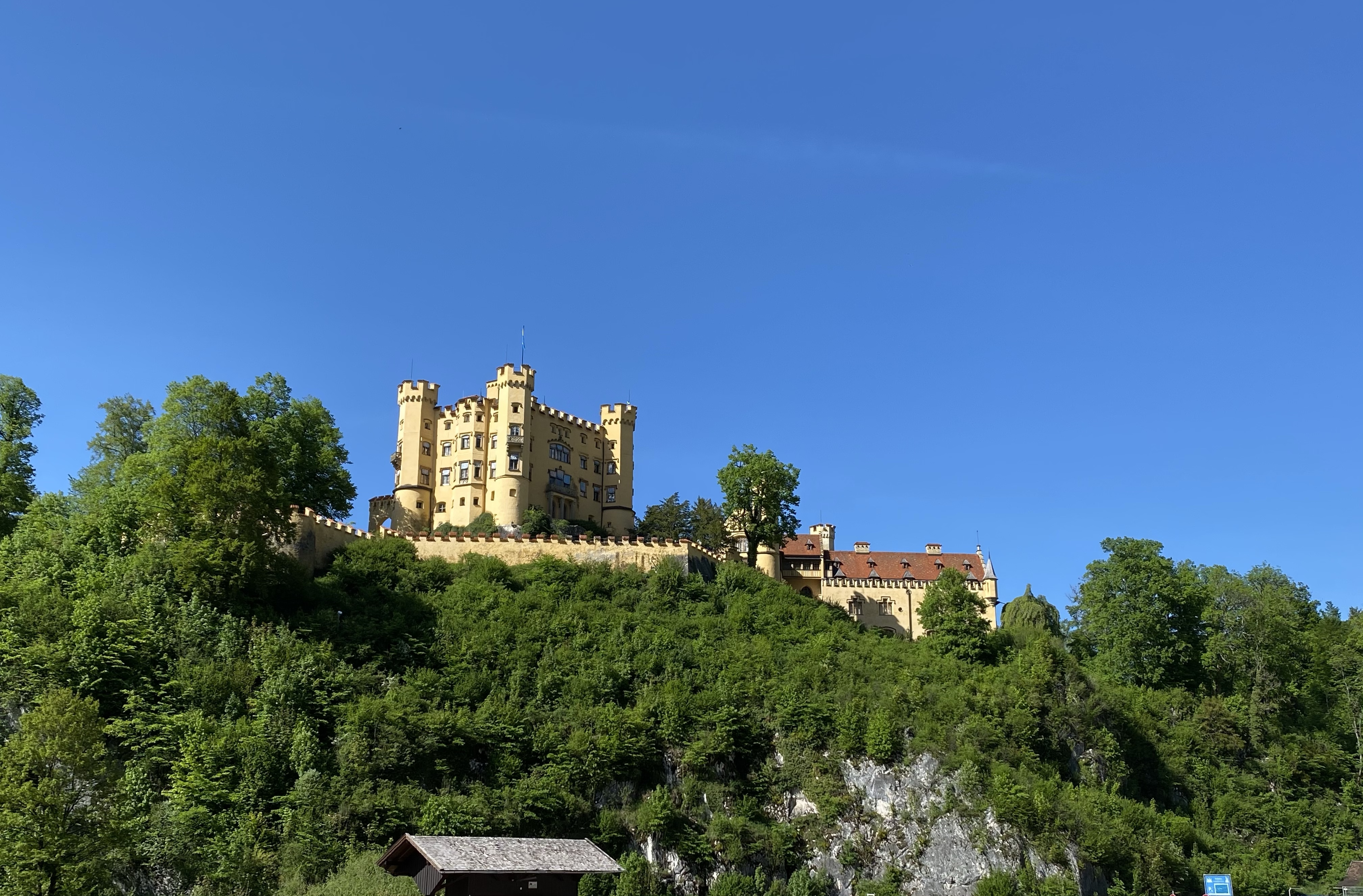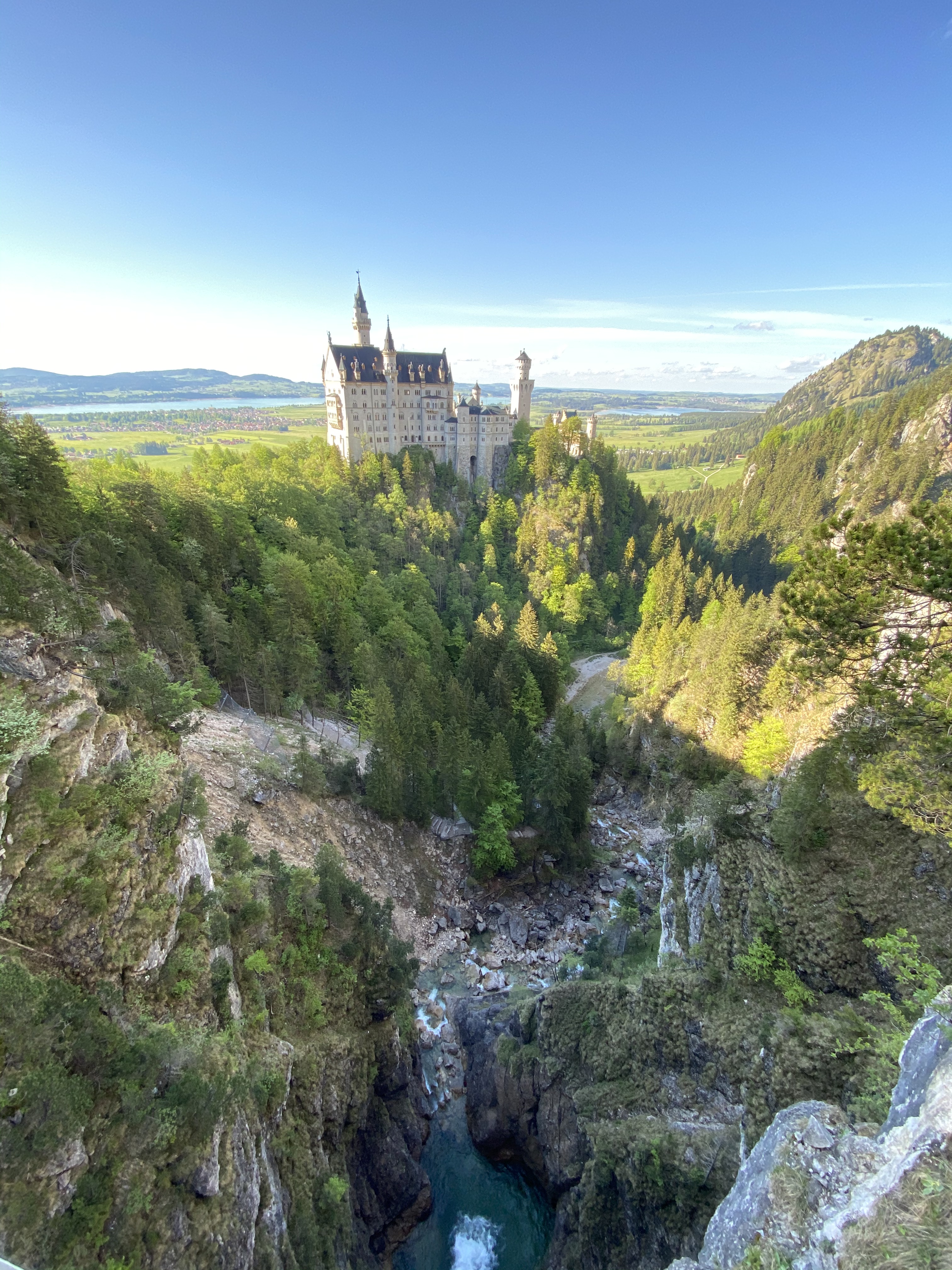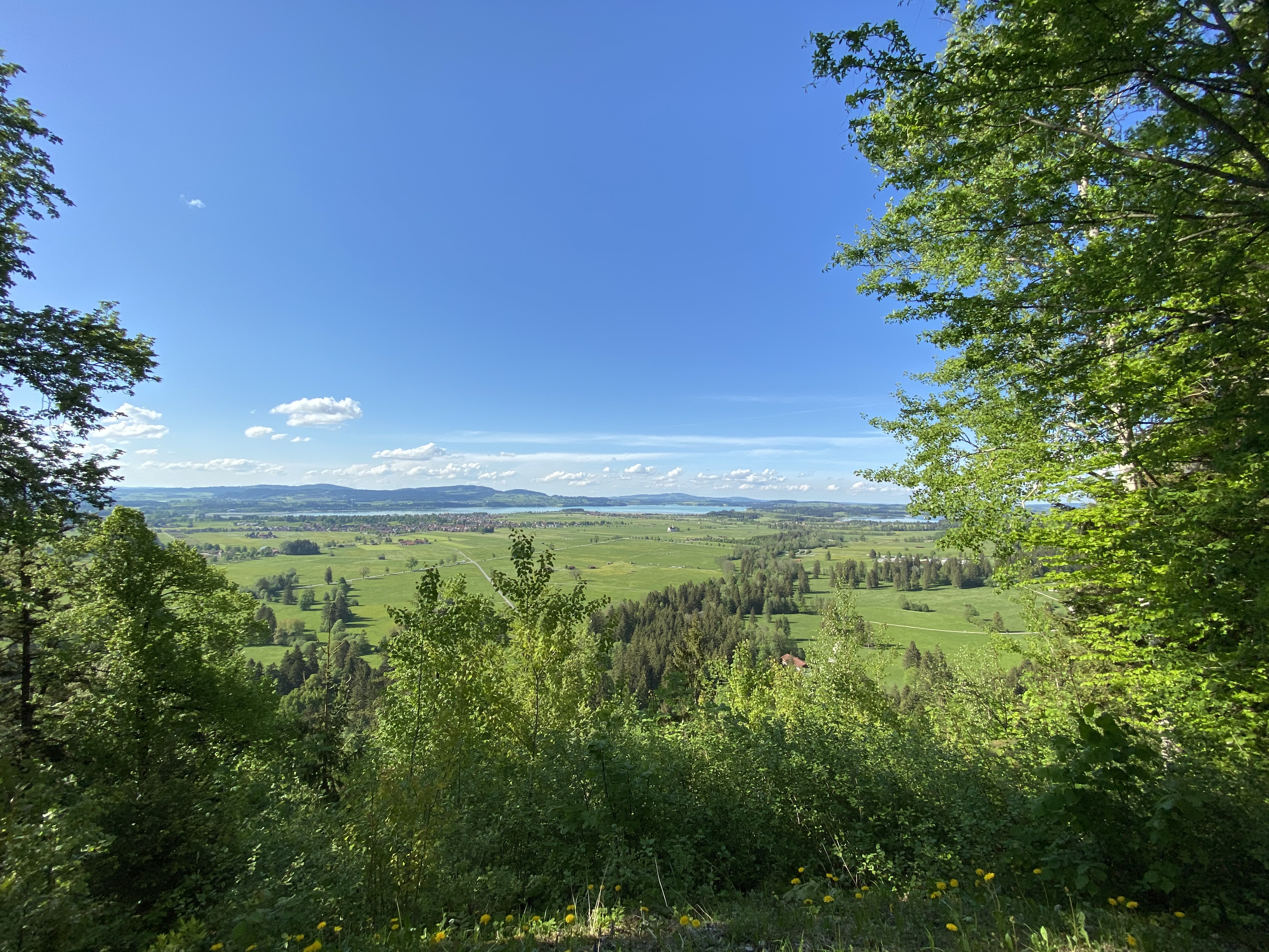 For a full 360 capture of the valley and lake below plus the wonderful yellow Hohenschwangau castle just walk 100 meters to find a stunning viewpoint in a bend that has perfect clear views.