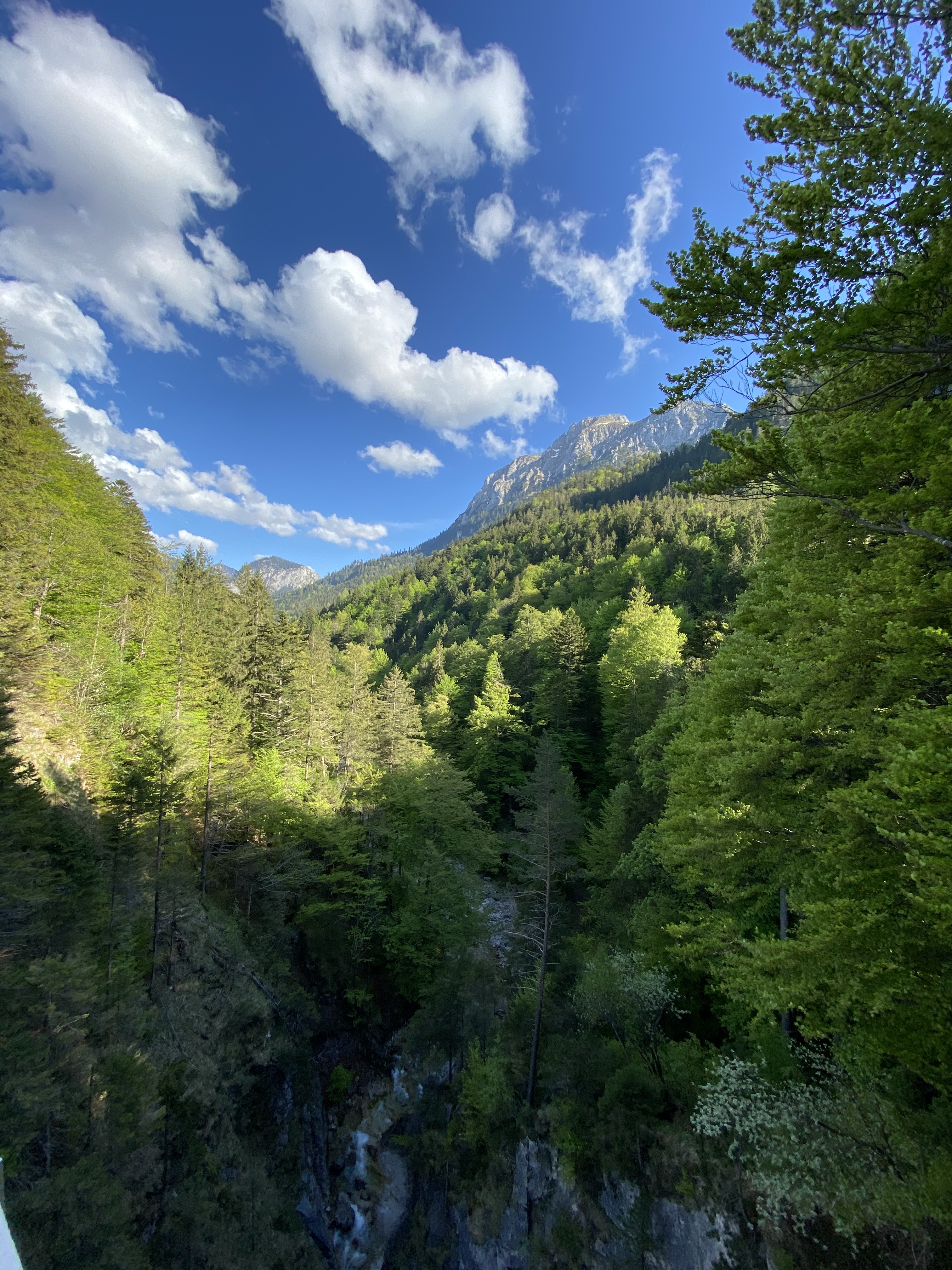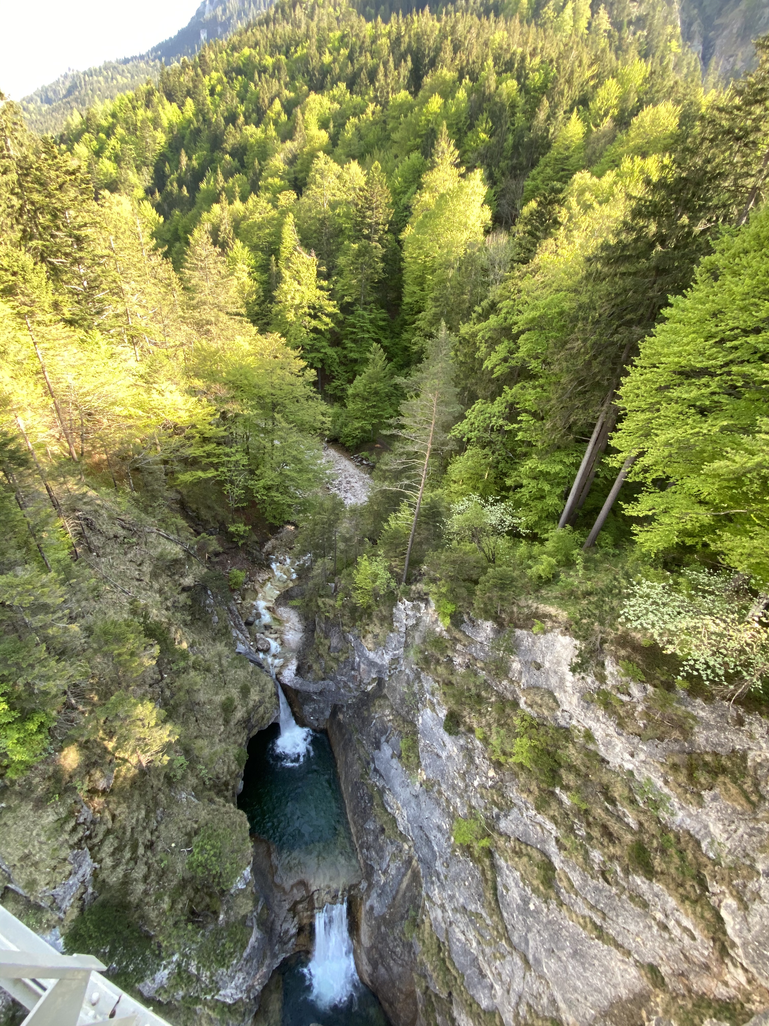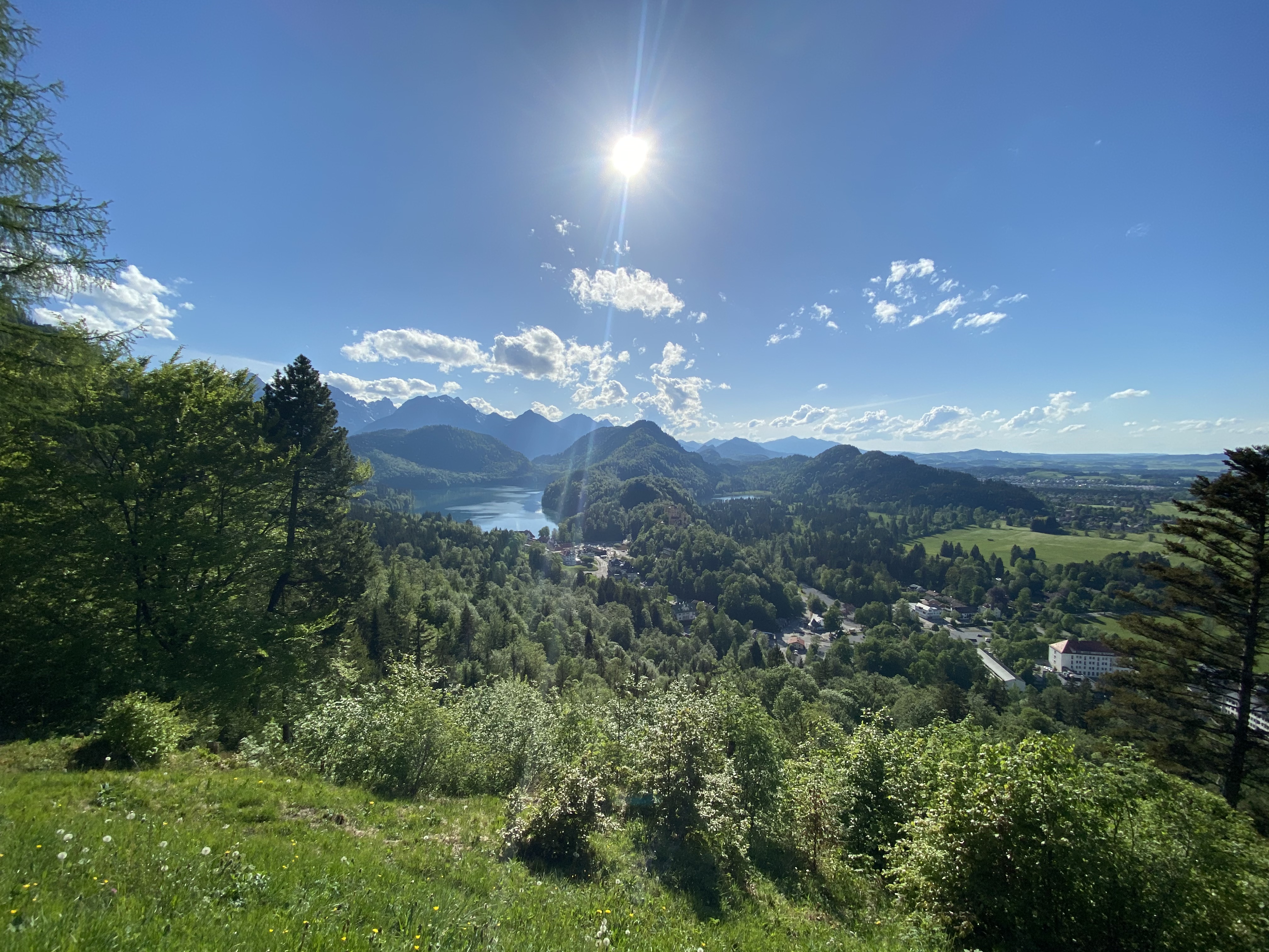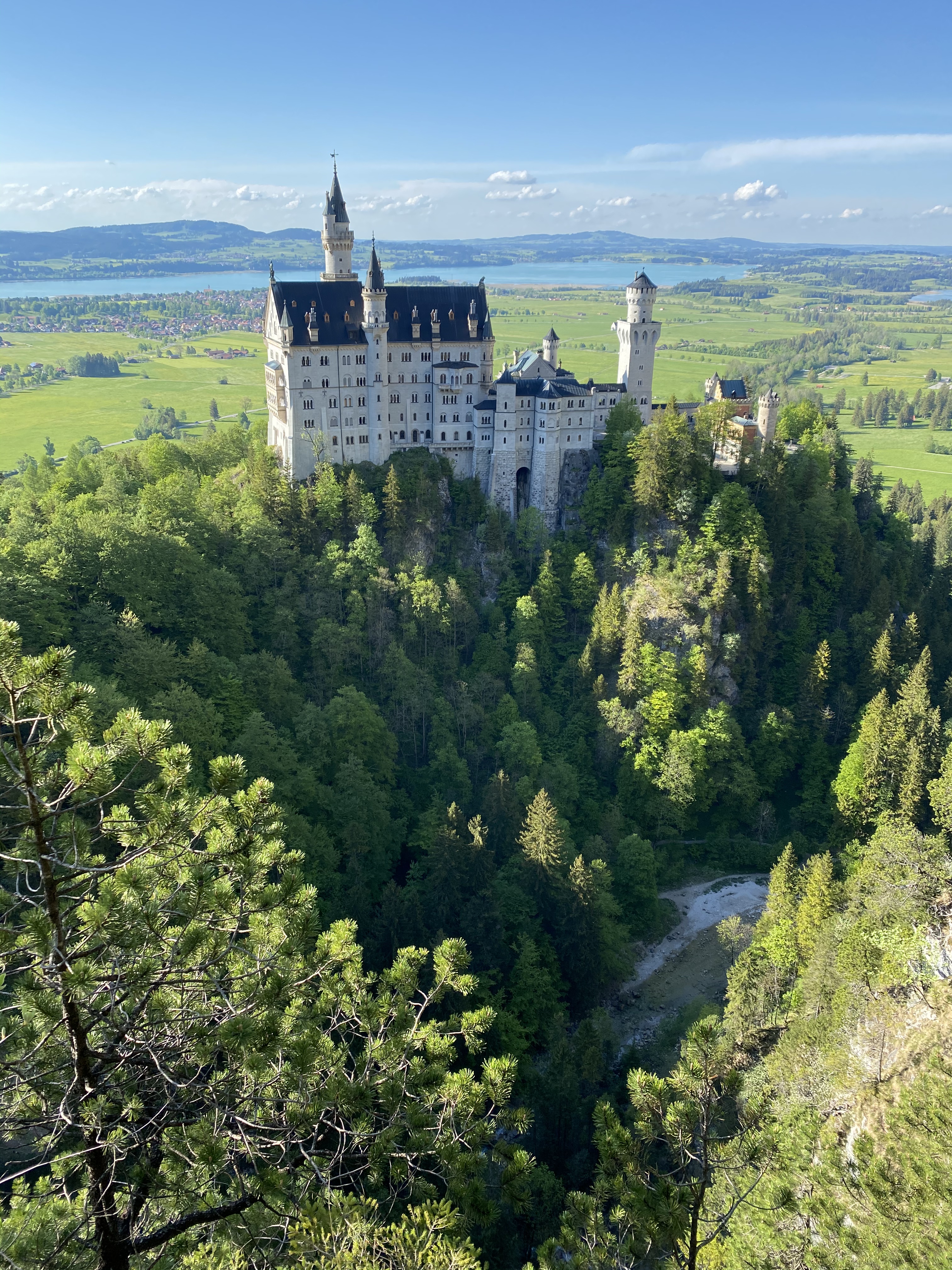 For a full 360 capture of the valley and lake below plus the wonderful yellow Hohenschwangau castle just walk 100 meters to find a stunning viewpoint in a bend that has perfect clear views.