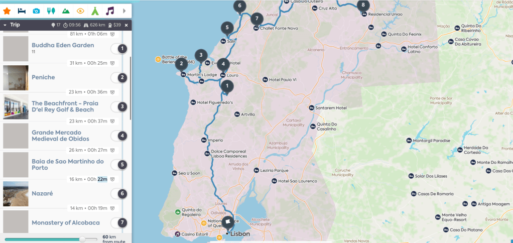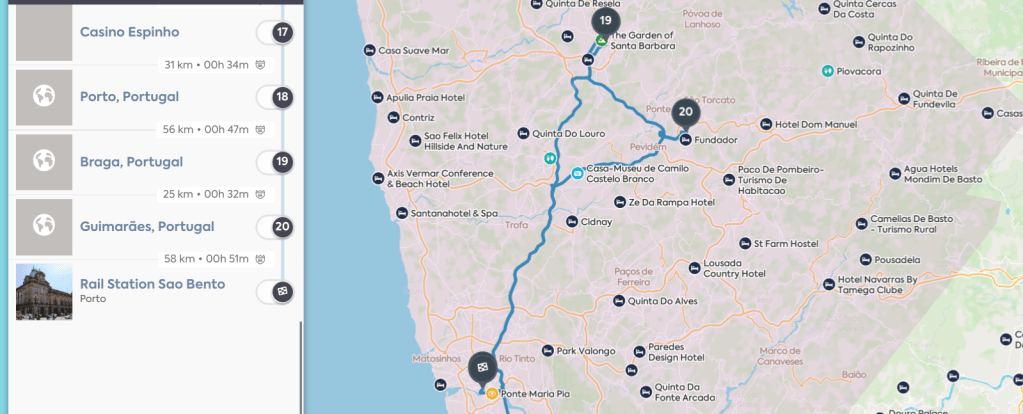 Lisbon to Porto it’s around 300km, circa 3h on the motorway with tolls, but this route is almost fully done via the national roads, that despite being well maintained will be quite slower. Stage 1 starts in LISBON, for which you can see a separate itinerary on this travel blog.