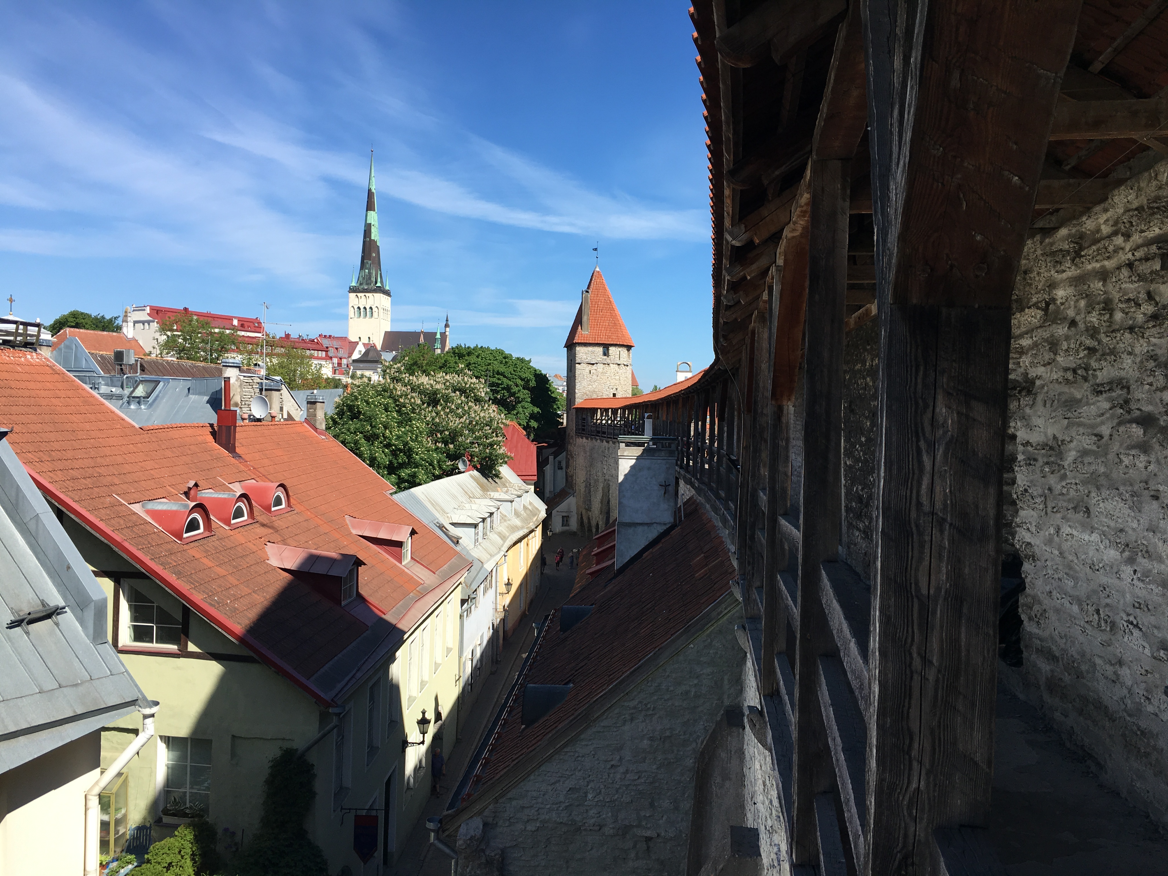 One of the many beautiful viewpoints of Tallin Old Town is in Kohtuotsa, just after climbing the castle hill. It shows part of the walls, city center and eastern part of the city. The best perspective is for me when looking to the left of this platform. with the tower of St Olav’s church, the highest of Tallinn at 124 meters, stands out. More about it later on!