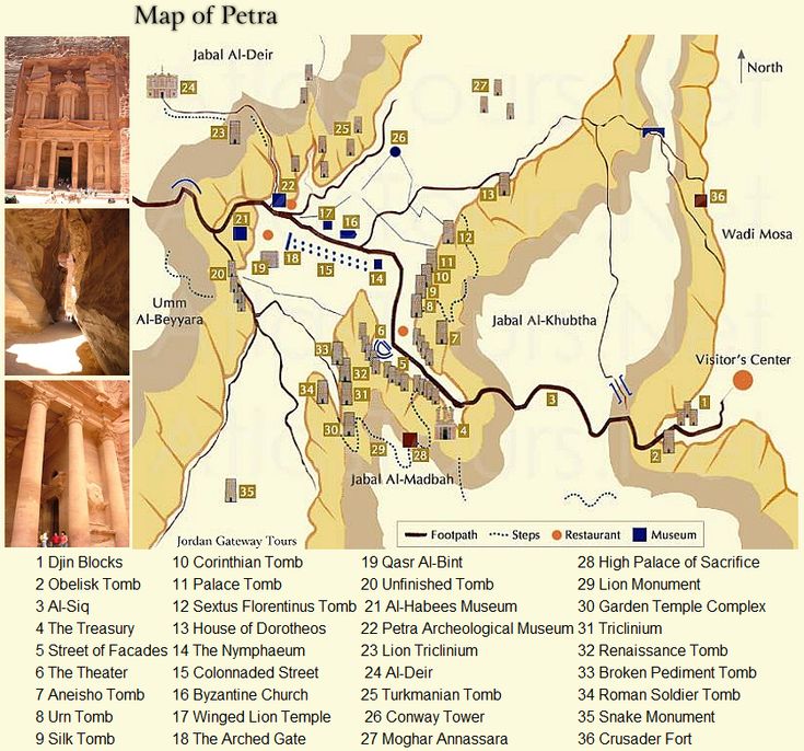 From the over 30 sites of interest inside the Petra old city (see the map image below), these are for me the top 11 Petra must see places by topographic order when coming from the main gate):