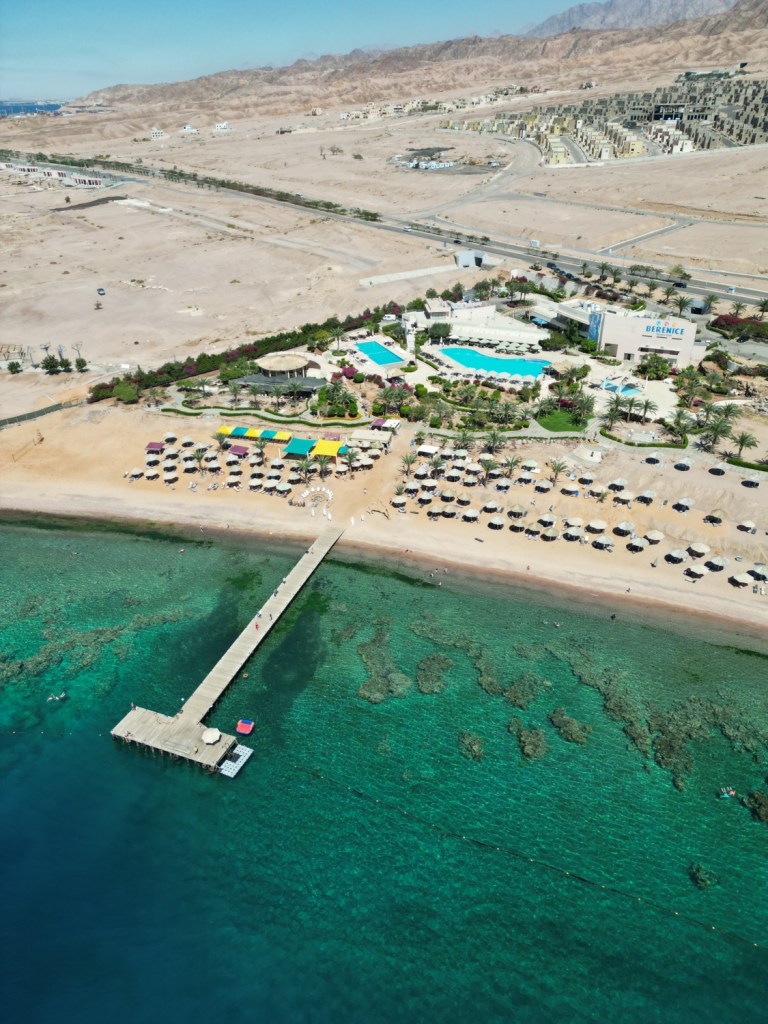 My personal favorite and best beach in Aqaba is for me Berenice Beach with its beach club – palm trees, beach bar, sports activities, snorkeling / diving options, great music vibes and the most beautiful corals and various wrecks ton dive nearby make this beach something special. Its well worth the entry fee of 17 JOD (25 EUR/ USD) where you get access to all the facilities and towels. Plus the very important happy hour from 5 to 6pm!