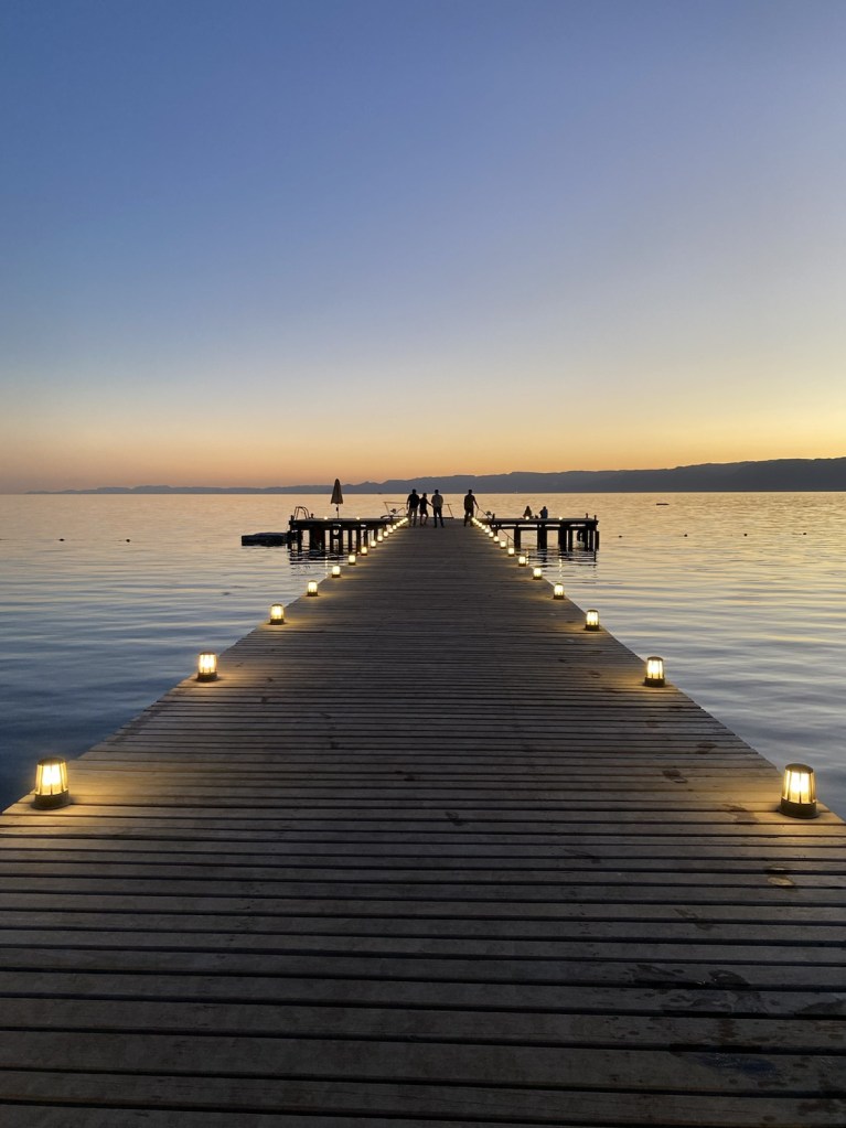 Last but not least, I can tell you to stay for sunset – they light up a fireplace in the evening, have a beautiful pier and iluminated trees that make the sunset in Aqaba over the Red Sea and mountains on here are simply magical.