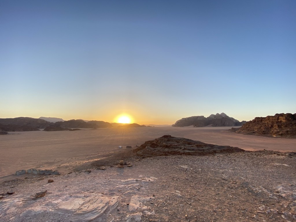 - Sunset spot – the best sunset spot in Wadi Rum is on a low rock formation with 360 views of the desert widest plain and mountains close to Wadi Rum village. Its a known stop as many jeep tours end up here and is also the most known spot for many films due to the vastness around.