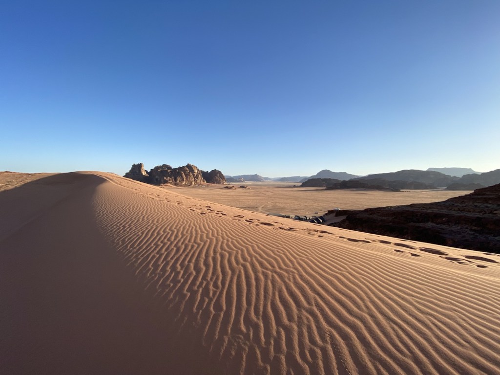 - Great Sand Dune – for a desert, Wadi Rum doesn’t have that many dunes, but you will find some very big ones like the Great Sand Dune. Very steep and demanding short climb, the views are breathtaking and you can slide your way down or just dig your feet on the soft deep sand