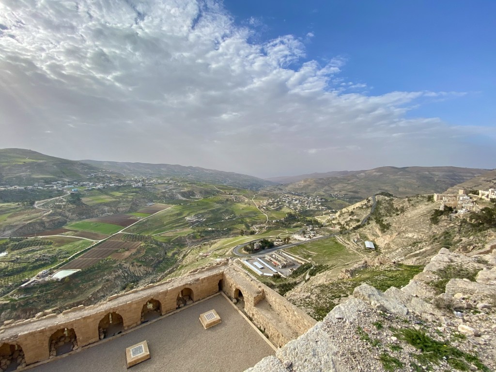 How to get to Kerak castle is by car from the main cities in the Dead Sea or Amman is some 2 hours and from Petra is around 45 minutes. By bus follow my travel section above. The entry fee is included in the Jordan Pass, that I explain in detail in my travel tips for Jordan section. But before you go to the Kerak Castle entrance, you should make a stop at the Panorama Café area (terrace access is for free) to admire the greatness of Kerak Castle
